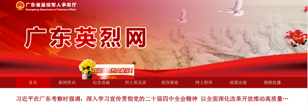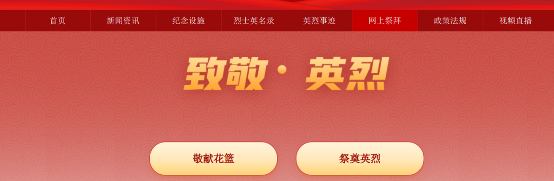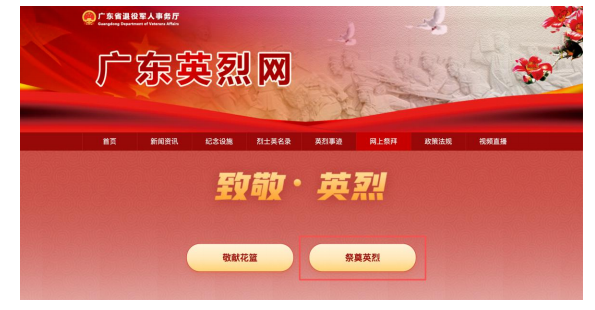 祭奠英烈。点击首页“欢迎您为烈士献花”飘窗或点击“网上祭拜”,点击“祭奠英烈”,或通过导航“烈士英名录”,或在首页中部直接搜索、查找您想祭奠的英烈,浏览英烈的简要事迹,点击“奏乐”“祭拜”,向英烈献花、留言。