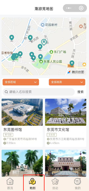 第三步:在“潮游莞”小程序首页,点击下方“地图”图标